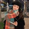 New Christmas red scarf women's winter warmth thickened imitation cashmere solid color knitted fringed scarf shawl student