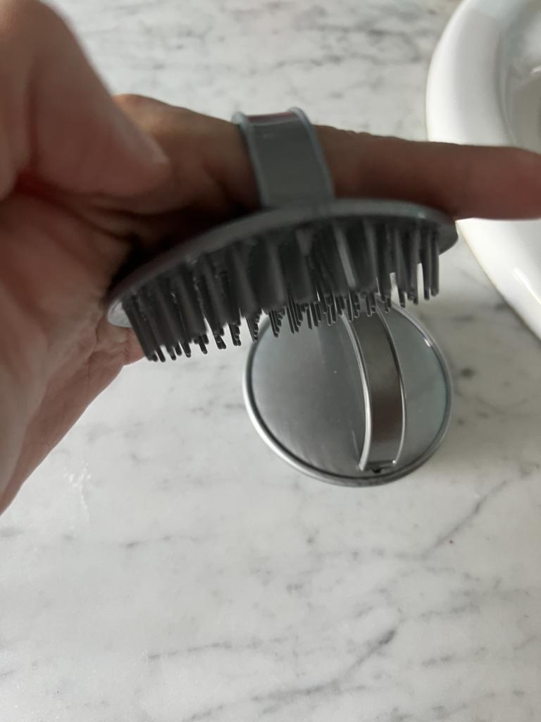 Kartáče na mytí pokožky hlavy, ideální, pokud dodržujete metodu kudrnatého grilu Jsou plastové včetně hrotů.
