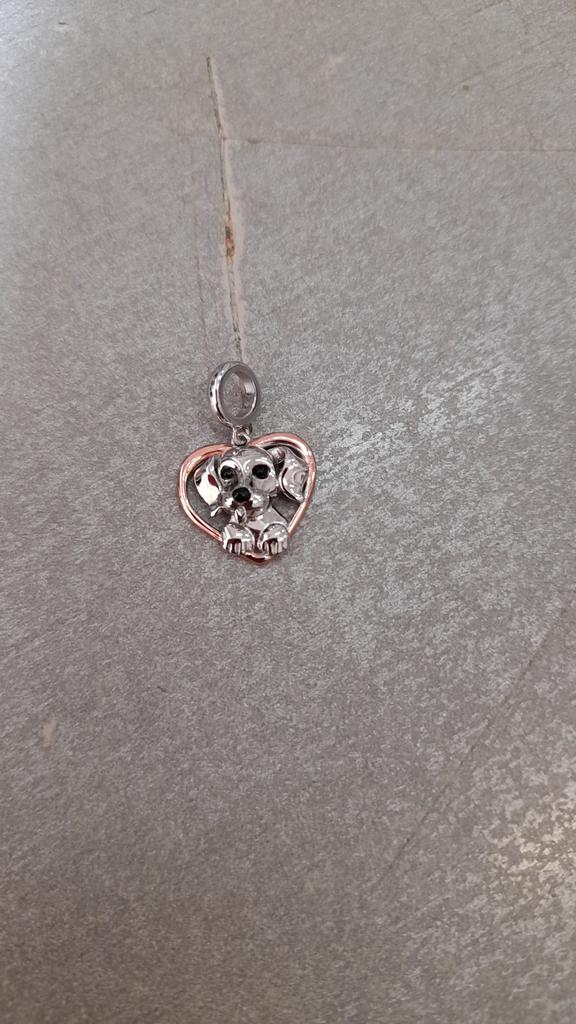 Bamoer 925 mincovní stříbro Roztomilé štěněcí korálky ve tvaru srdce Přívěsek s růžovým zlatem pro ženy Poklad vhodný pro šperky Originální náramek