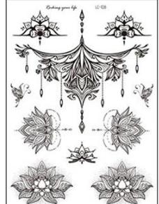 Mandala Flower Dočasné tetovací samolepky Klíční kost Hand Back Body Retro Černá Jednorázová falešná tetování Vodotěsná pro sexy ženy