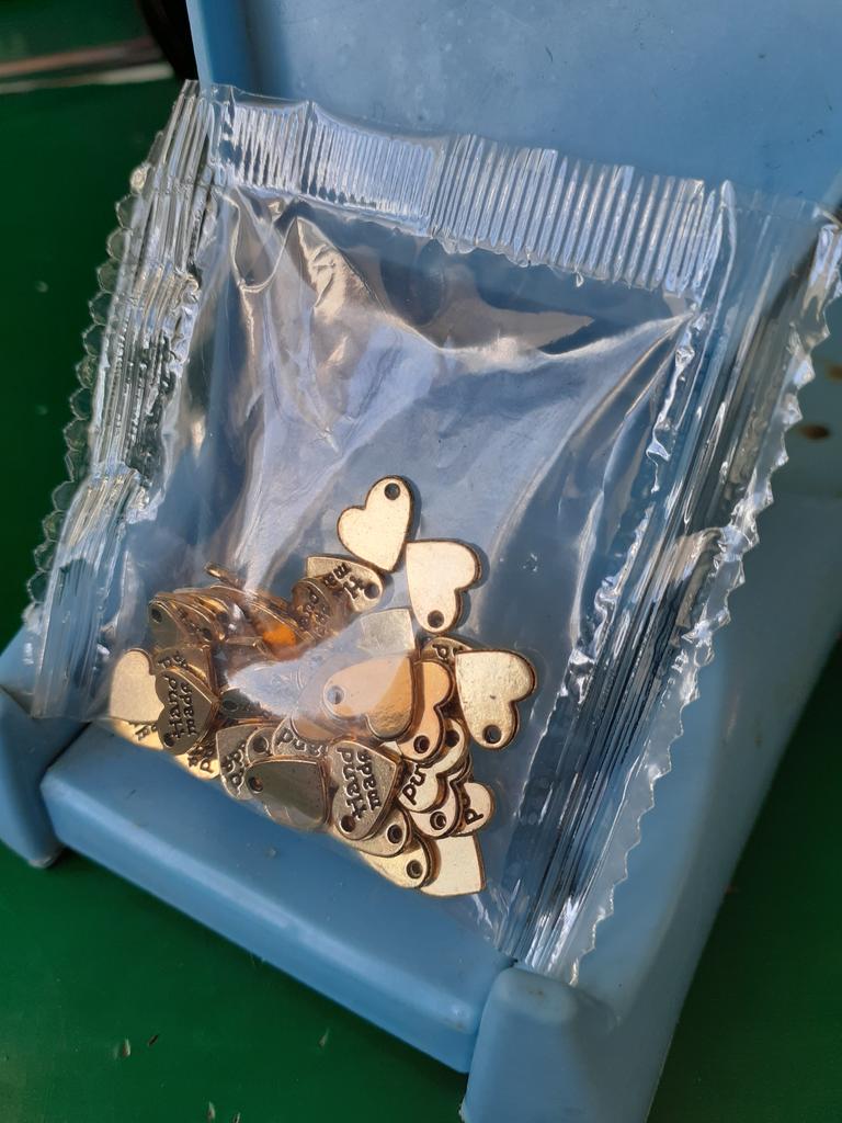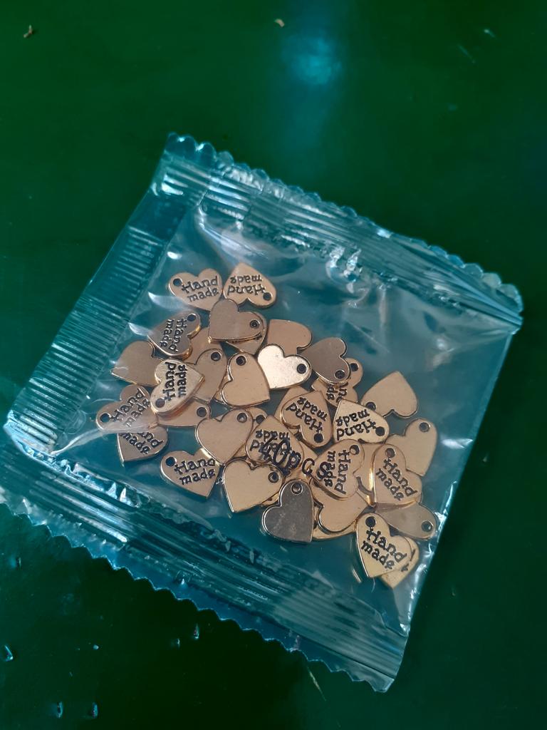40 ks ručně vyráběných přívěsků a náhrdelníků se srdíčky Starozlatá barva 8X8mm