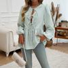 Spring O Neck Contrast Bow Lace Up Shirts For Women Loose Long Lantern Sleeved Blouse Fashion Lady Casual High Street Tops