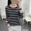 Dámské jednoduché triko s dlouhým rukávem, svetr, tílko s pruhovaným vnějškem