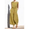 Features: Short Sleeves, V-Neck, Solid Color, High Waist, Buttons, Pockets, Long Jumpsuit Jumpsuit with Belt.