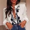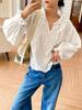Embroidery Women Shirts Stand Long Lantern Sleeve Spring Summer Ladies Tops