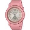 Introducing the CASIO Baby-G model BGA-150EF-4BJF, which features a vibrant pink color that adds a feminine touch. This watch is based on the basic model BGA-150, providing a wide face and a simple design. The use of pink gold Arabic numerals as indices creates a stylish harmony, and the digital LCD screen shows useful information such as the date, world time, and stopwatch functions. Moreover, it comes with an LED light feature that allows easy time-checking in dark environments.