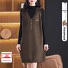 Dámské pletené šaty bez rukávů Cardigan Dvoudílná souprava Svetrové šaty s vysokým pasem Pletená vesta Šaty Cardigan Set Outfity