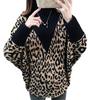 Azura Exchange Black Leopard Patchwork Waffle Knit Buttoned Blouse