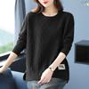 Spring and Autumn Women's Plus Size Knit Sweater Thin Loose Crew Neck Pullover Knitwear Short Slit Stretch Knit Top Jumper