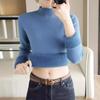 Winter Female Plush Sweater Women Half High Collar Long Sleeved Thickened Velvet To Keep Warm Knitwear Lady Versatile Solid Color Basic Pullover