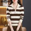 Women's Striped Pullover Sweater Autumn and Winter New Casual Simple Loose Versatile Base Sweater Thick Sweater Top