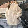 Winter Letter Pink Zippercoat Lamb Woolen Keep Warm Mid-length Women Sweatshirt Embroidery Cute Biscuit Bear Fashion Lady Pullover