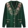 Dámský jednořadý tenký svetr kabát pro střední a starší osoby pletená svetrová bunda s výšivkou