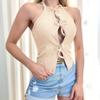 Spring Summer Women's Solid Colour Bowknot Collage Design Sexy Hollow Hottie Slim Tank Top
