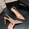 Pointed high-heeled sandals women's 2024 summer new rhinestone mesh bag head side empty rear empty sandals buckle fashion shoes
