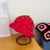 Women Cherry Theme Stretchy Hollow Ruffles Colorful Handmade Crochet Fashion Bucket Hat Cute Plush Hat Bowler Hat 58cm