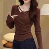 Autumn and Winter Small Sexy Front Chest Hollow Out Slim Fit Base Knitted Shirt for Women, Long Sleeved Temperament Top, Women's Fashion