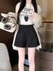 Introducing our latest fashion-forward piece for the cooler seasons: these stylish high waist women's booty shorts. Expertly crafted from premium polyester material, they offer both comfort and durability. The high waistline design enhances your silhouette, and the slim fit creates a sleek, elegant look. These Korean style shorts boast a straight-leg cut, making them versatile for various occasions. Ideal for autumn and winter, they are the perfect addition to any fashion-savvy wardrobe.