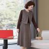 Introducing a stylish and comfortable petite dress designed for middle-aged and elderly women, featuring a sophisticated shirt collar and a unique fake two-piece design. Made from high-quality polyester, this elegant dress offers both durability and ease of movement. Perfect for both spring and autumn, it provides a chic, layered look without the bulk of multiple garments. The timeless design ensures that it can be worn for a variety of occasions, adding an effortless touch of sophistication to any wardrobe.