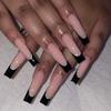 24-Piece Black French Extra-Long Ballerina Nails with Metal Butterfly Design - Press-On False Nails for a Spicy, Cool European-American Look