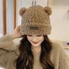 Cute Little Bear Hat Winter Thickened Big Headed Soft Glutinous Plush Hats Ear Protection Woolen Korean Warm Fluffy Fur Headgear