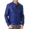 SkinOutfit Men's Genuine Lambskin Blue Leather Jacket Stylish Motorcycle Bomber Biker Outerwear MJ 233