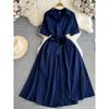 Retro V-neck Open Back A- line Large Hem Short Sleeve Dress