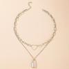Vícevrstvá geometrická silná svetrová řetízka s dutým srdcem Módní šperk Dárková řetízka Srdce Trendy Zámek Přívěsek Náhrdelník pro ženy