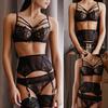 Set sexy elegantní krajkové spodní prádlo podprsenka+podvazek+slipy na spaní ve střihu Babydoll
