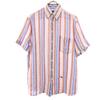 This is an old Wrangler short-sleeved shirt from the 1990s. It has holes in the pockets and inside the pockets, as well as stains, yellowing, fading, and discoloration throughout. The material is unknown. Please understand that this is a used item before purchasing.