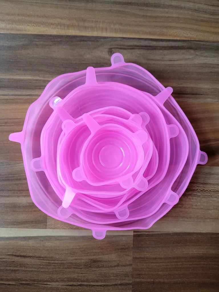 * opakovaně použitelné silikonové pokličky * ⭐⭐⭐⭐⭐ 💥𝗟𝗶𝗲𝗳𝗲𝗿𝘇𝗲𝗶𝘁 Dobře 3 týdny do Německa 💥𝗟𝗶𝗲𝗳𝗲𝗿𝘂𝗺𝗳𝗮𝗻𝗴 Součástí dodávky je 1 balení se 6 silikonovými víčky různých velikostí.. K dispozici jsou silikonová víčka v různých krásných barvách. Vybrala jsem si růžovou, samozřejmě! 😉👌 Bylo to zabaleno v obyčejné fólii . 💥𝗤𝘂𝗮𝗹𝗶𝘁ä𝘁 Jsem velmi nadšený z funkčnosti. 👌 Jedná se o produkt, který je určen k opětovnému použití. Má tedy vysokou myšlenku ochrany životního prostředí. 🌍 Pokud máte potraviny v misce nebo obalu, které by měly být zakryty, nemusíte k zakrytí trhat běžnou potravinovou fólii, ale můžete použít tato silikonová víčka.. K tomu stačí vybrat správnou velikost a silikonová víčka natáhnout na nádobu a pak lze potraviny skladovat v chladničce tak, aby zůstaly čerstvé.. Tím se produkuje méně odpadu (potravinová fólie se nemusí likvidovat). Silikonová víčka jsou velmi elastická, ale přesto robustní. ❌Nevýhoda: Nezjistil jsem žádné negativní body. Pro materiálové složení : Silikon, myslím 💥𝗙𝗮𝘇𝗶𝘁 Super praktická silikonová víčka, která jsou velmi elastická, ale přesto robustní. Používají se k zakrytí potravin v otevřených nádobách a tím k udržení jejich čerstvosti. Tím se šetří životní prostředí, protože nevzniká odpad. Tento článek mohu bezvýhradně doporučit ⭐⭐⭐⭐⭐ Pokud se vám moje recenze líbila a pomohla vám při rozhodování o nákupu, potěšilo by mě, kdybyste mě zde sledovali, protože v blízké budoucnosti bude následovat mnoho dalších užitečných recenzí. 😉