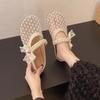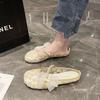 Bow pearl mesh yarn half drag women's summer new models with skirts flat women's shoes lazy one pedal sandals