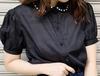 This year's popular cotton linen ruffle blouse has been updated. The back length has been shortened to create a difference in length between the front and back. By shortening the back, you can tie the hem in front to prevent the fabric from bunching up when wearing it.