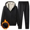 Wolass Sweatshirt and Pants Breathable Sherpa Long Zipper Casual Solid Loose Size XL Men's Set, Fabric, Sweat-Wicking, Quick-Drying, Fall/Winter Wear,