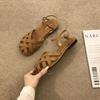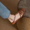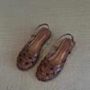 Sheepskin version~ Hollow and breathable pineapple head Roman shoes women's niche leather woven back strap flat-bottomed bag head sandals
