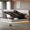 【Stauraum】Dieses Polsterbett bietet viel Stauraum für Kleidung und Decken außerhalb der Saison,Lattenrost durch Hubzylinder leicht hochklappbar.