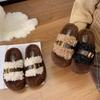 Thick-bottomed outer wear fluffy slippers women's 2025 autumn and winter new fashion small muffin roll plush cotton mop