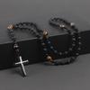 Catholic Black Dragon Agate Smoky Crystal Rosary Beads Necklace Hematite Cross Pendant Necklace Prayer Meditation Jewelry