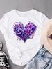 (Asian Size) love heart flower cute Short Sleeve T-shirts Women's Top T Female Print Fashion O-neck Casual Clothing Graphic Tee