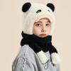 Kids Hat With Face Guard Scarf Plush Inner Lining Solid Color Bear