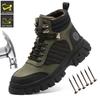 Leather Non Slip Work Boots for Men Rotating Button Safety Shoes Steel Toe Sneaker Male Puncture Proof Protective Boots
