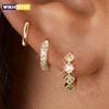 3PCS New Fashion Four Zircon Flower Hoop Earring Set For Women Stainless Steel Double Stud Chain Tassel Huggie Piercing Jewelry
