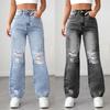 Women's High Waist Washed Women's Jeans Fashionable Versatile Straight Leg Pants
