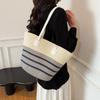 Lightweight Stripe Woven Tote Bag Polyester Summer Beach Handbag Shopping Straw Bag School