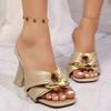 Fashion Square Heel Slippers Summer New Square Toe Metal Buckle Cutout Breathable Non-slip Wear-resistant High Heels