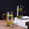 2pcs 500ml Glass Cups with Walnut Handle Household Heat-resistant Mug Large Capacity Tea Making Cup Office Drinking Glasses