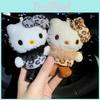 This plush toy features a cartoon-style Hello Kitty with a 10cm leopard print faux fur collar, crafted from soft short-pile plush and filled with durable PP cotton. It measures functions as a decorative keychain, bag charm, or accessory. Ideal for personalizing backpacks or adding a playful touch to daily essentials, its easy to clean with a gentle wipe.