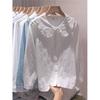 Women's Lace Peter Pan Collar White Blouse, Korean Style, Long Sleeve, Autumn/Spring 2023