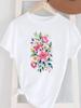 (Asian Size) Short Sleeve Women's Top T Female Print Fashion ladies O-neck Casual trend lovely flower cute Clothing Graphic Tee T-shirts