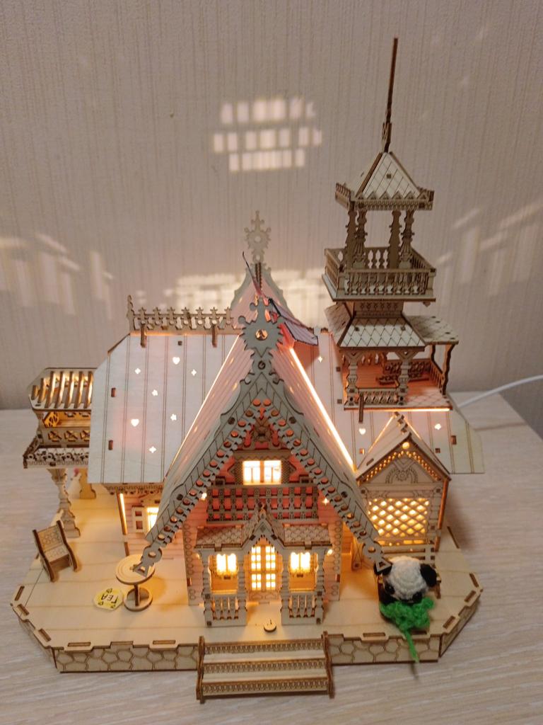 1PC 3D Wooden Puzzle Villa House Royal Castle with Light Assembly Toy Kid Adult DIY Model Kits Desk Decoration for Gift